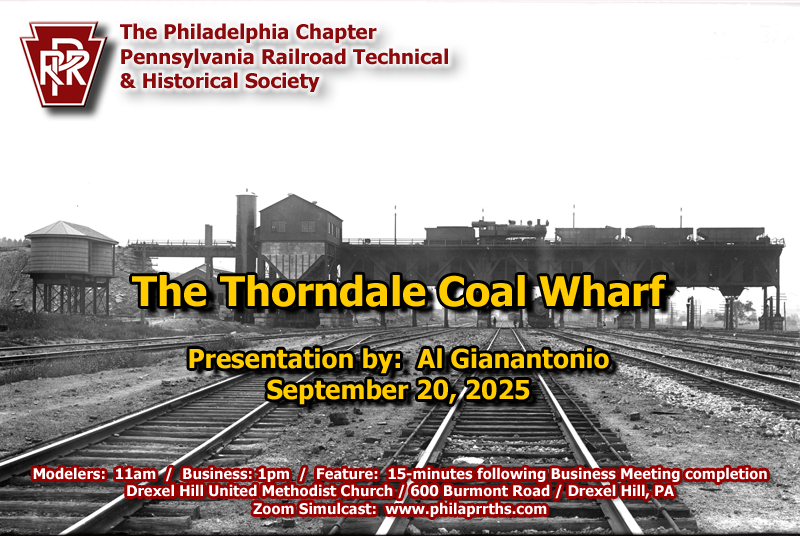 Chapter member Al Gianantonio presented images of primarily official PRR photographs taken around the turn of the 20th Century when both the Thorndale coal wharf and its almost twin sister, the Denholm coal wharf were built. Its location, general structural components, track layout, operation and adjacent buildings and their purposes will be discussed as well as what was previously used to coal steam trains on the PRR's Philadelphia Main Line prior to its construction. Check back for YouTube release of this presentation.