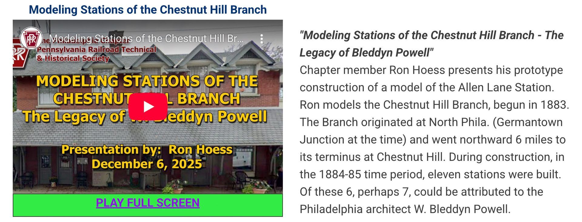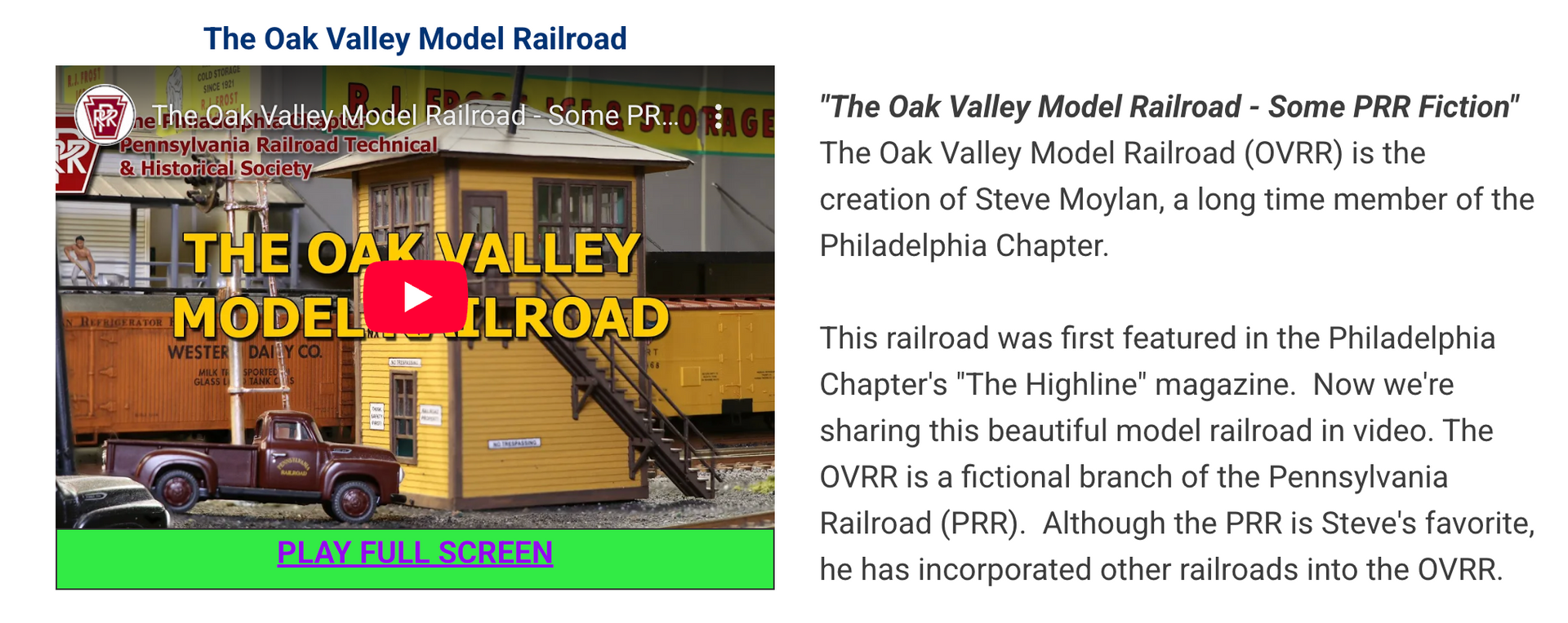 The latest addition to our YouTube offerings is a PRR model railroad. For more information and to view more videos, please visit the chapters "Video / YouTube" page.